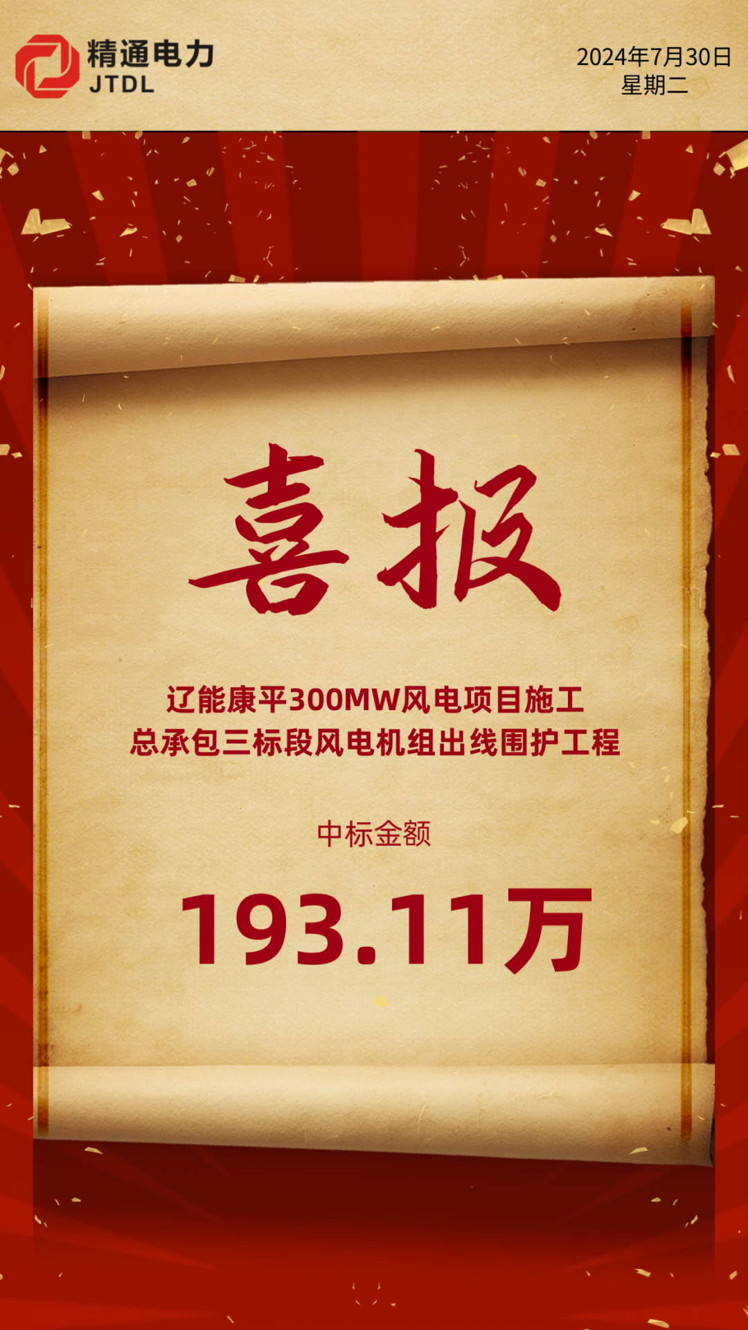喜報!精通電力中標遼能康平300MW風電項目施工總承包三標段風電機組出線圍護工程