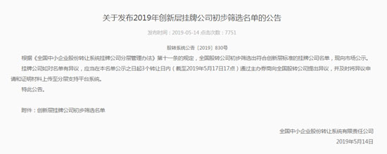 2019年新三板分層調整拉開帷幕,經全國股轉公司初步篩選,691家掛牌公司入圍創新層初篩名單。